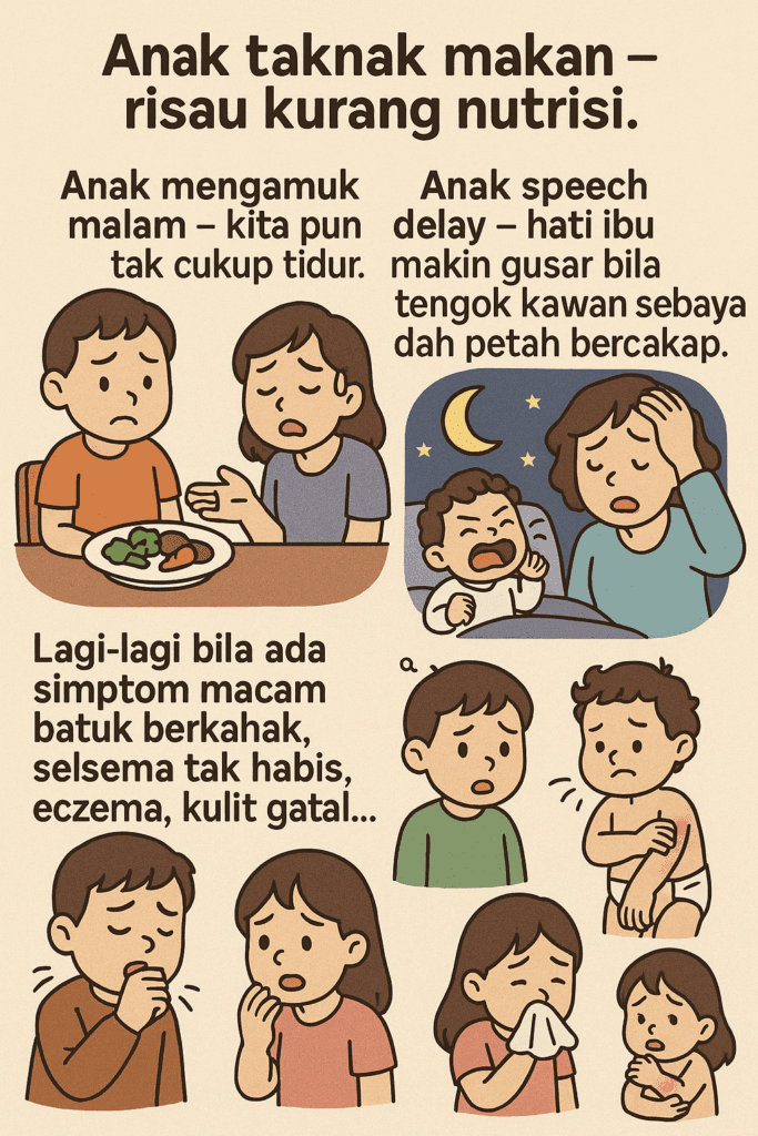 Ramai ibu ayah alami cabaran yang sama. Tapi jangan risau, ada solusi yang boleh bantu – dan ia bukan ubat, bukan suplemen, bukan mitos.